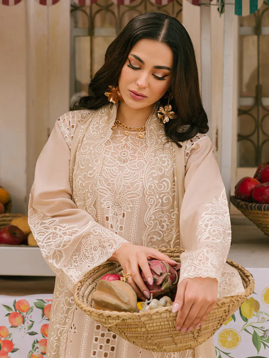 QALAMQAR-3PC LAWN EMBROIDERED SHIRT WITH CHIFFON EMBROIDERED DUPATTA AND EMB TROUSER-RP-4600