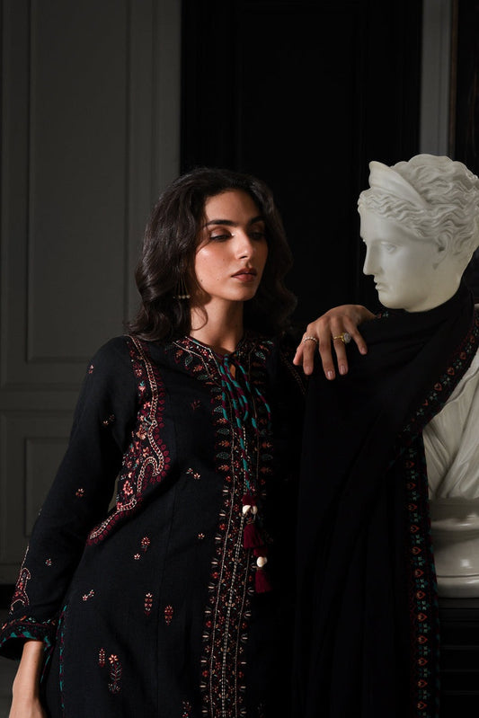 GARNET-3PC KHADDAR EMBROIDERED SHIRT WITH COURTRAI PRINTED SHAWL AND TROUSER-BIC-4307