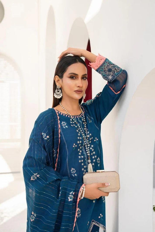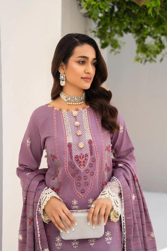 JAZMIN LAWN 3PC - LAWN EMB SHIRT WITH LAWN HEAVY EMB READY TO WEAR DUPATTA AND LAWN DYED TROUSER | RP-3705