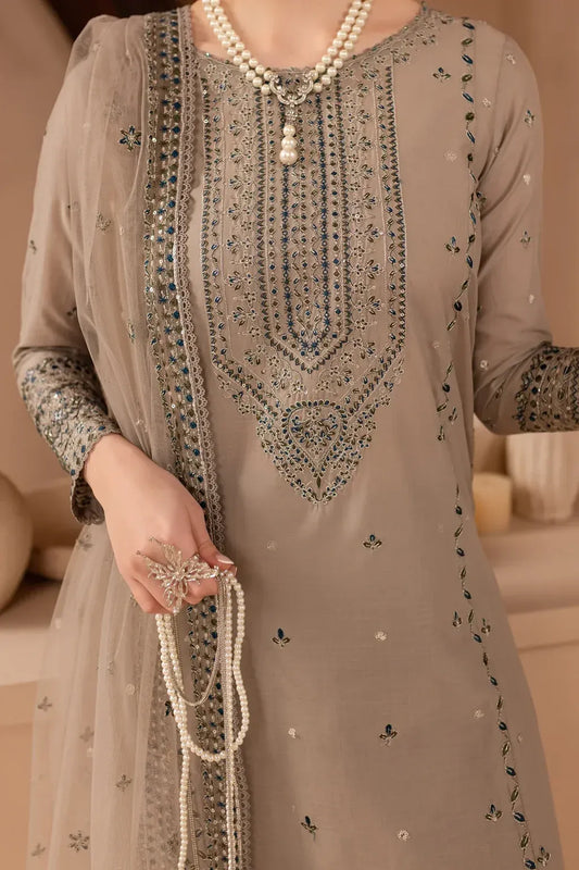 MIRANA-3PC LAWN EMBROIDERED SHIRT WITH KHADDI NET EMBROIDERED DUPATTA & TROUSER-RP-4701