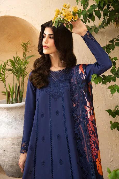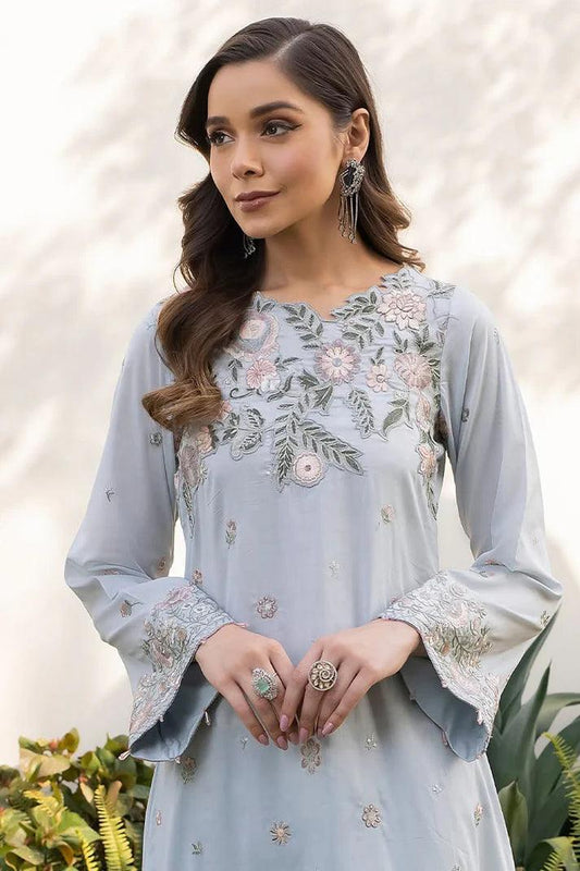 AZURE LAWN 3PC - LAWN EMB SHIRT WITH MONARK PRINTED DUPATTA AND LAWN DYED TROUSER | RP-1039