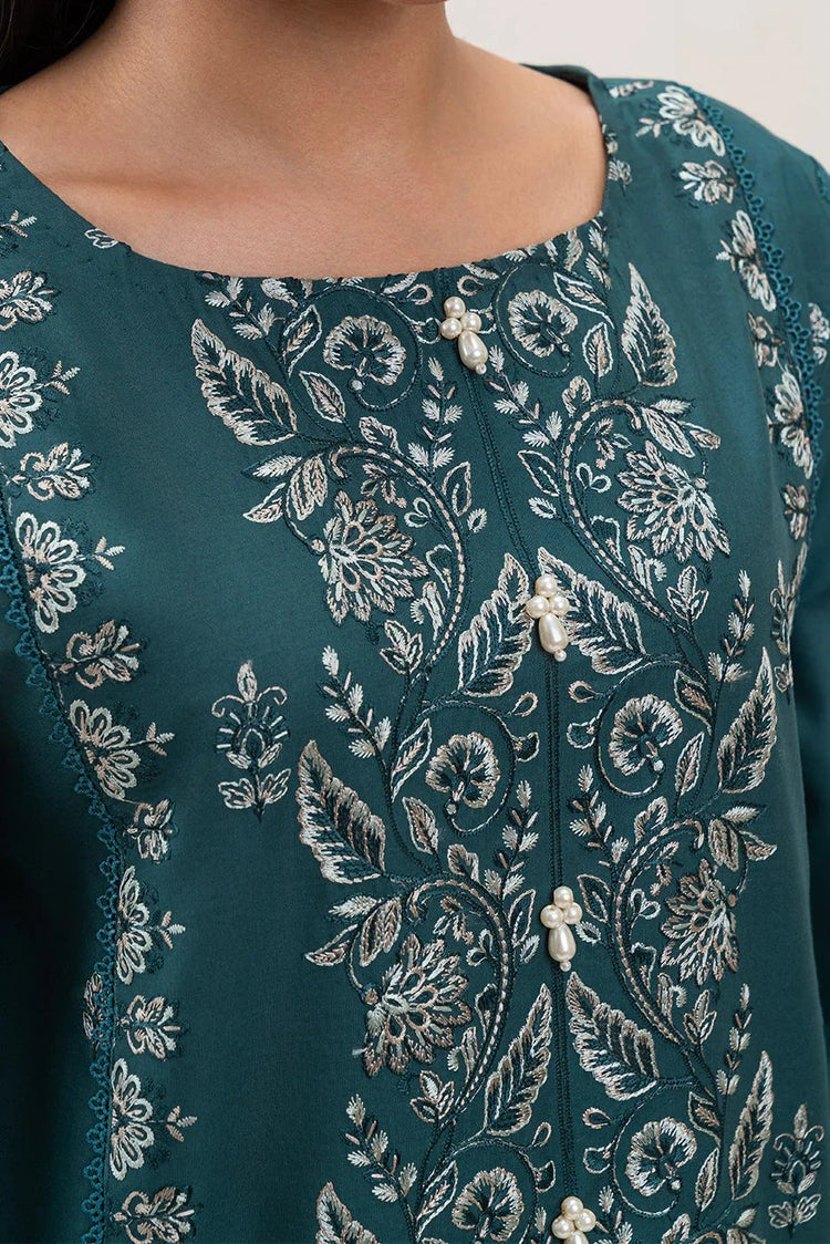 BEECHTREE-3PC DHANAK EMBROIDERED SHIRT WITH COURTRAI PRINTED SHAWL AND EMB TROUSER-BIC-4158