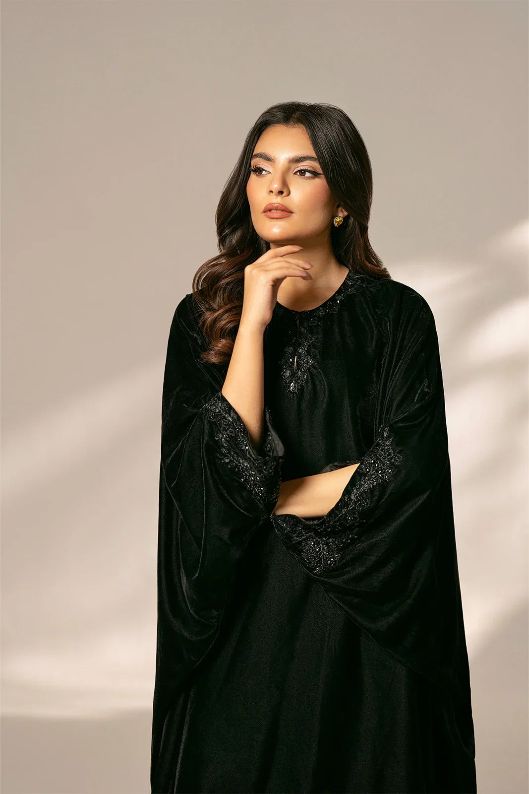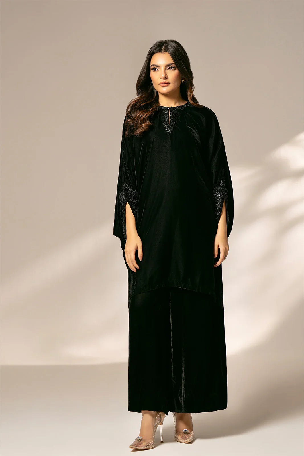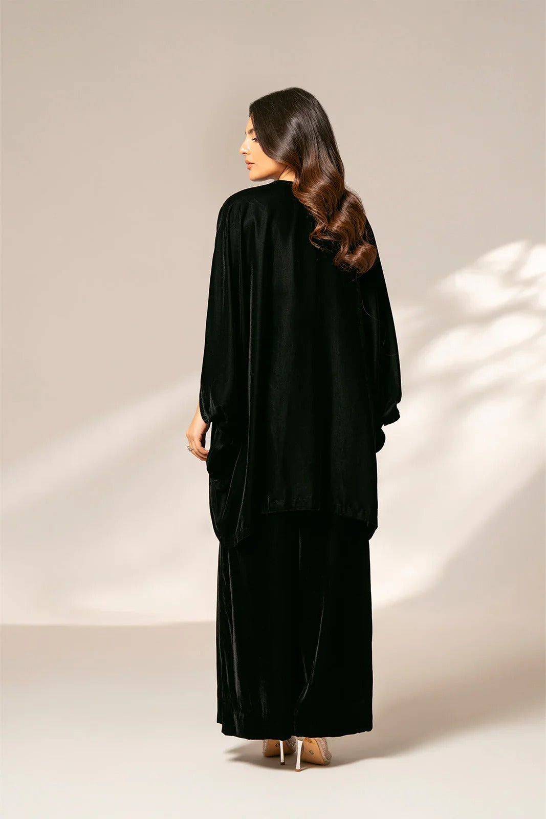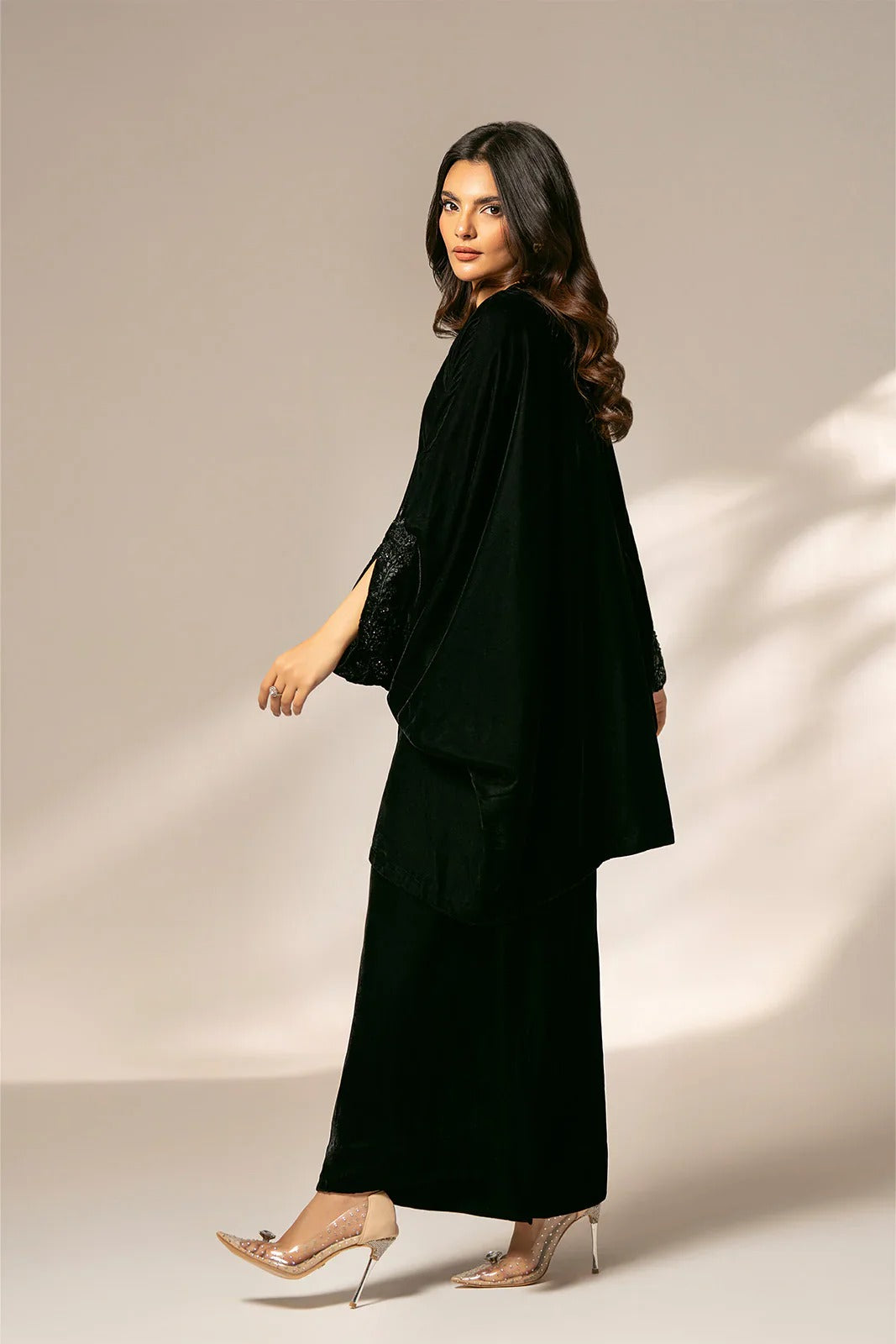 Black velvet Co-Ord set embellished with ribbon, crystals& cut dana.
