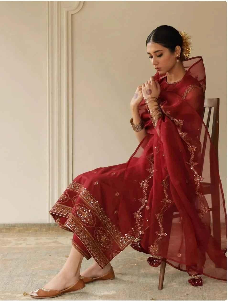 This stitched/unstitched 3-piece ensemble features a Lawn or raw silk shirt and trouser, beautifully adorned with Tilla and sequins embroidery. Paired with a pure organza embroidered dupatta, this outfit is designed to make a statement. Whether you're dressing for a casual day out or an evening gathering, this versatile piece transitions effortlessly from day to night. A perfect blend of elegance and comfort for your everyday style.