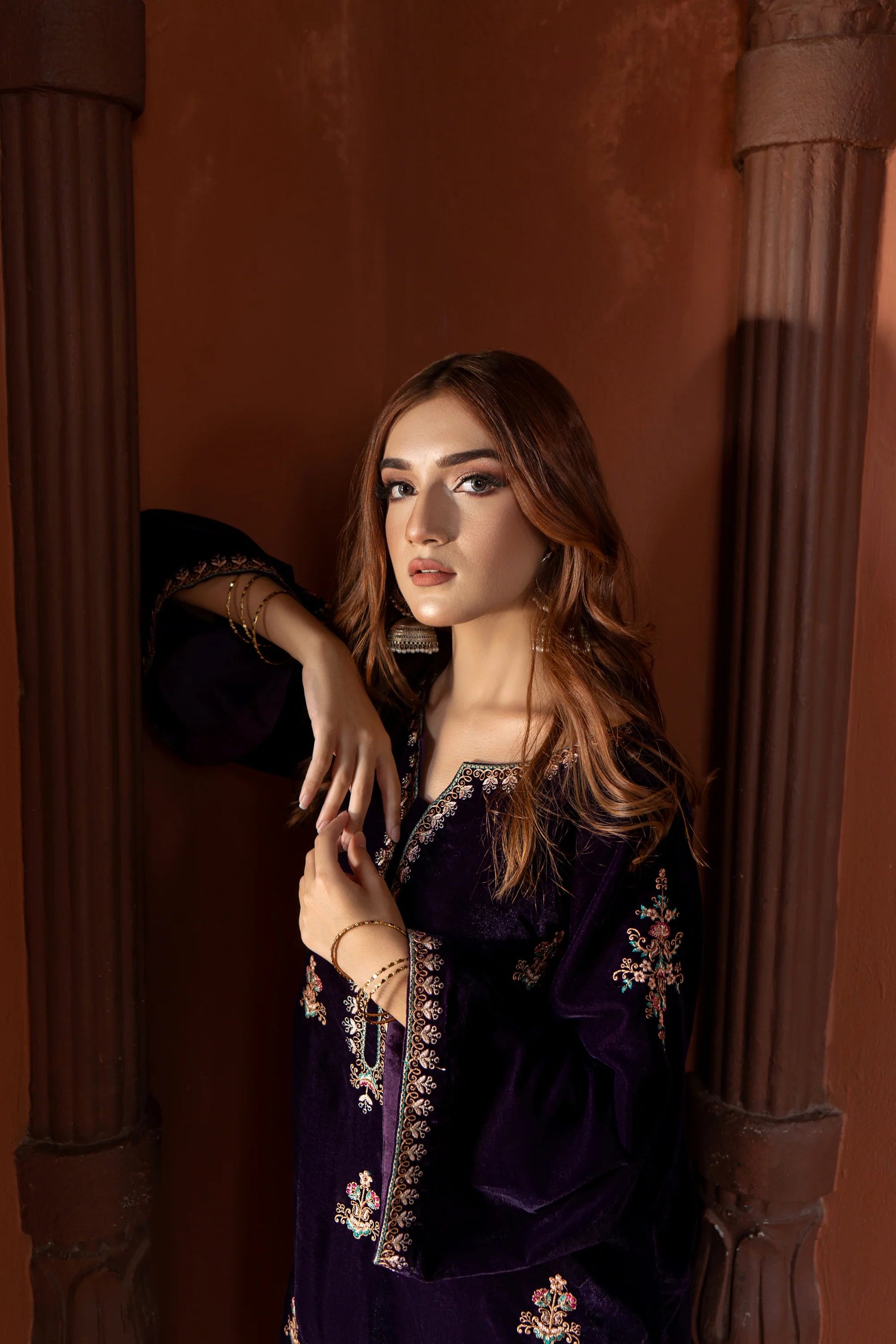 URGE - 2PC VELVET HEAVT EMBROIDERED SHIRT WITH VELEVT EMBROIDERED SLEEVES & VELVET TROUSER-BIC-D22 MICROO 9000